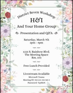 H&I And Your Home Group -Workshop